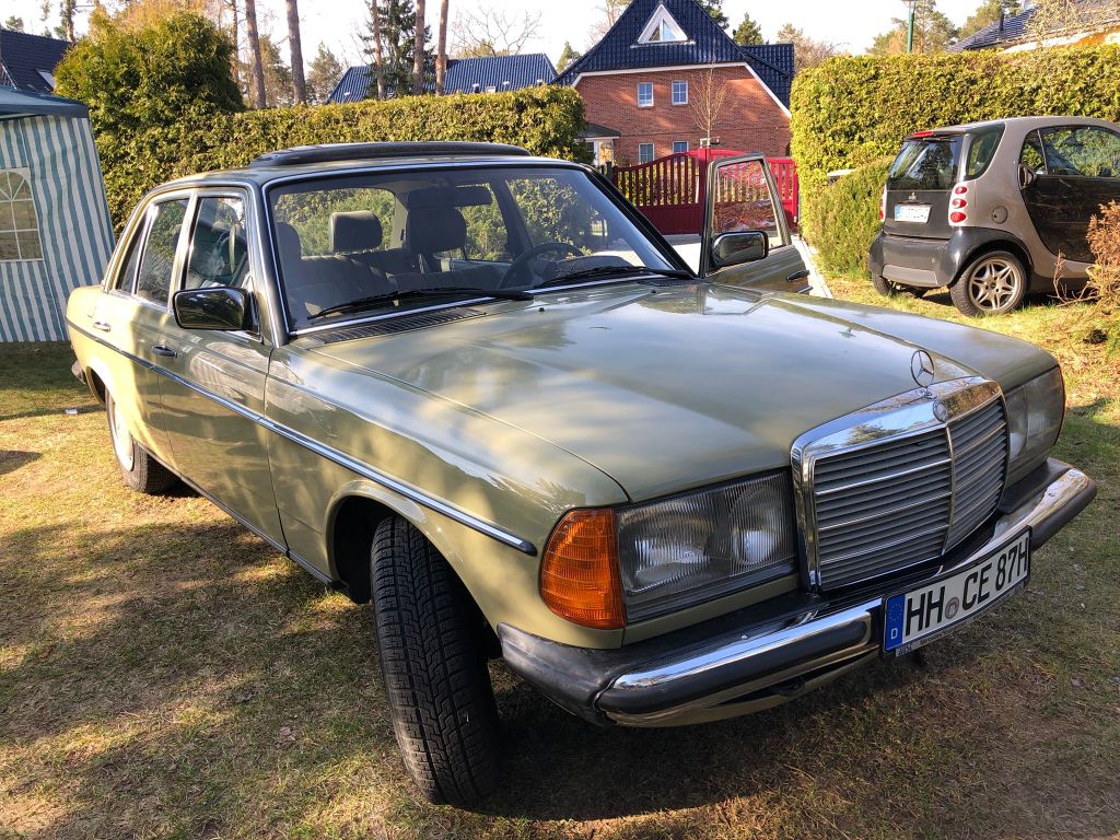Das Auto haben wir natürlich schon. Wir haben uns einen Mercedes 200 (W123) gekauft. Baujahr 1984.