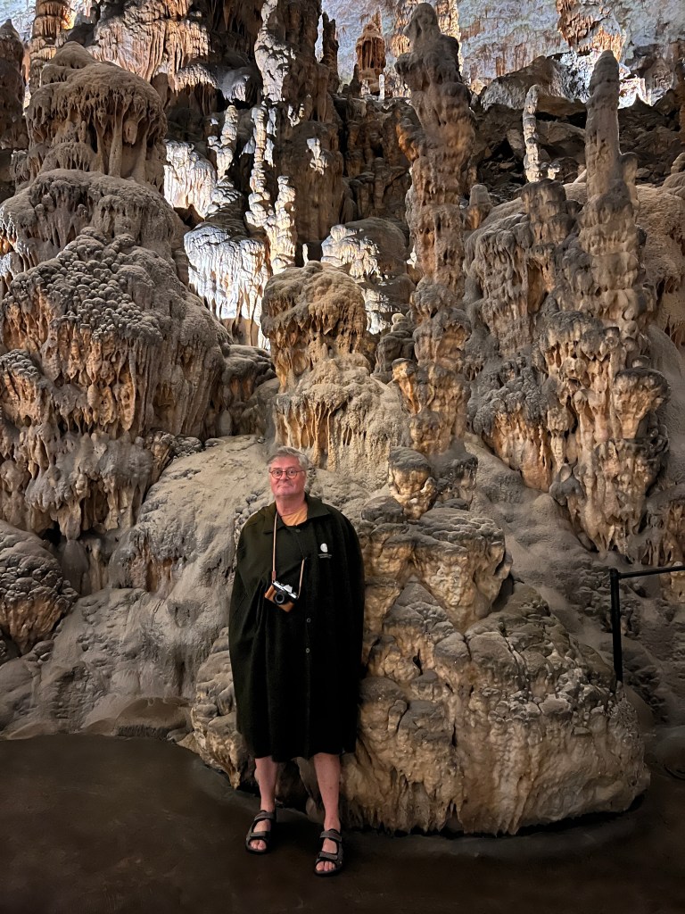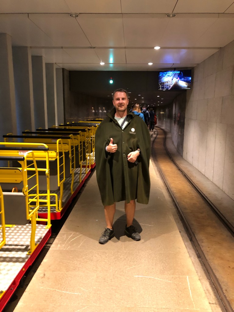 Nur 24km weiter waren wir dann in Postojna bei der Höhle. Ein sehr großer Parkplatz versprach viele Touristen. An der Kasse angekommen kauften wir direkt ein Kombiticket für die Höhle und die Burg für nur 40€ p.P. Wir waren 12:45 da und die nächste Tour startete 13 Uhr, perfekt also. Da wir das alles recht spontan planten und uns gar keine Gedanken gemacht haben was uns hier erwartet sind wir in T-Shirt und Shorts zum Höhleneingang, es war ja warm. Als wir nun die Leute sahen die sich vor dem Eingang ihr Pullis und Jacken anzogen, wurden wir stutzig. Die Führerin erzählte uns dann, dass wir 5km in den Berg fahren, dort 2h und es 10 grad sind. Das wird kalt, sagten wir, das Auto war zu weit weg, aber zum Glück konnte man sich sehr schicke Mäntel ausleihen. Damit wird’s gehen. Also ab in die Höhle.