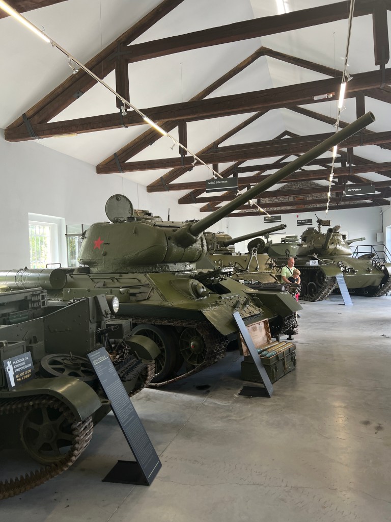 Auf dem Weg dort hin, über die Lande, ragte auf einmal ein Panzer aus einer Wand und knapp 100m weiter stand noch einer. Wir also angehalten, eigentlich nur für ein Foto sahen wir, dass das ein militärhistorisches Museum ist. Das sah spannend aus, also ab rein da. Wir haben ja Zeit. So eine Sammlung an Militärfahrzeugen haben wir noch nie gesehen. Sehr beeindruckend.